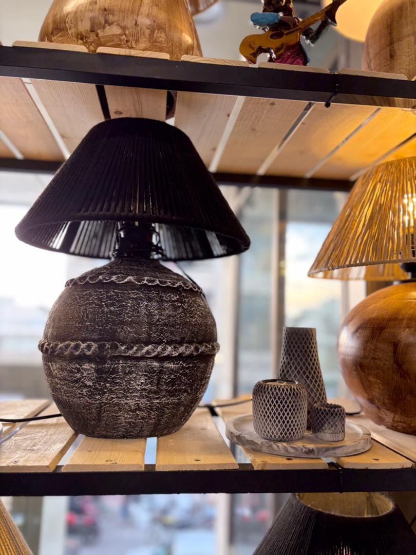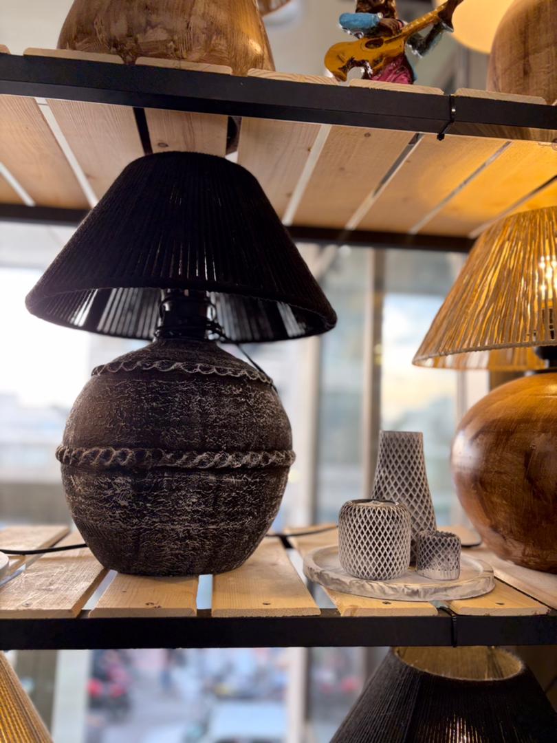 آباژور سفالی طرح رومی با شید مکرومه مشکی